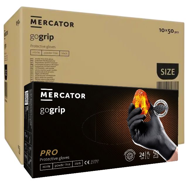 🧤 ОПТ (10 упаковок) Рукавички нітрилові Gogrip Black L /50 шт (25 пар)/ - Mercator Medical