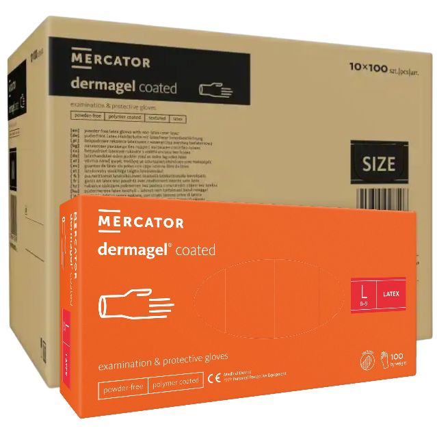 🧤 ОПТ (10 упаковок) Рукавички Dermagel Coated розмір L латексні кремові /100 шт (50 пар)/ - Mercator Medical