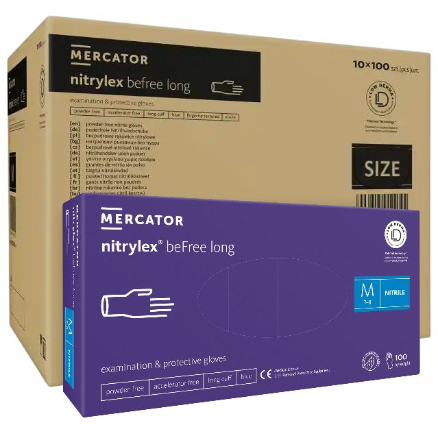 🧤 Nitrylex beFree long M - Mercator Medical - це оптимальний вибір для тих, хто шукає рукавички з високою манжетою, надійним захистом і винятковим комфортом в умовах тривалого навантаження.