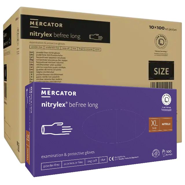 🧤 Nitrylex beFree long XL - Mercator Medical - це оптимальний вибір для тих, хто шукає рукавички з високою манжетою, надійним захистом і винятковим комфортом в умовах тривалого навантаження.