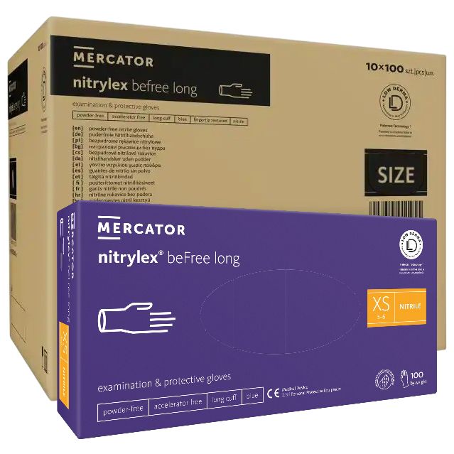 🧤 Nitrylex beFree long XS - Mercator Medical - це оптимальний вибір для тих, хто шукає рукавички з високою манжетою, надійним захистом і винятковим комфортом в умовах тривалого навантаження.