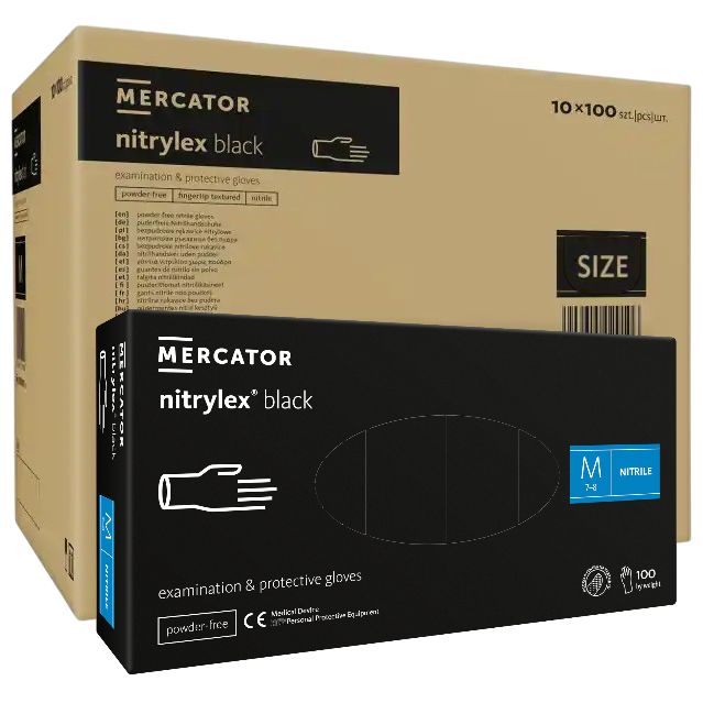 🧤 ОПТ (10 упаковок) Рукавички нітрилові Nitrylex Black чорні M /100 шт (50 пар)/ - Mercator Medical