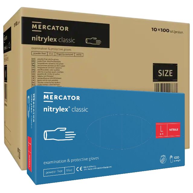 🧤 ОПТ (10 упаковок) Рукавички нітрилові Nitrylex Classic Blue L /100 шт (50 пар)/ - Mercator Medical