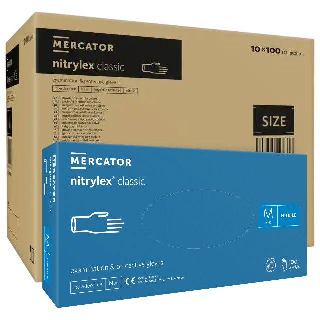 🧤 ОПТ (10 упаковок) Рукавички нітрилові Nitrylex Classic Blue M /100 шт (50 пар)/ - Mercator Medical