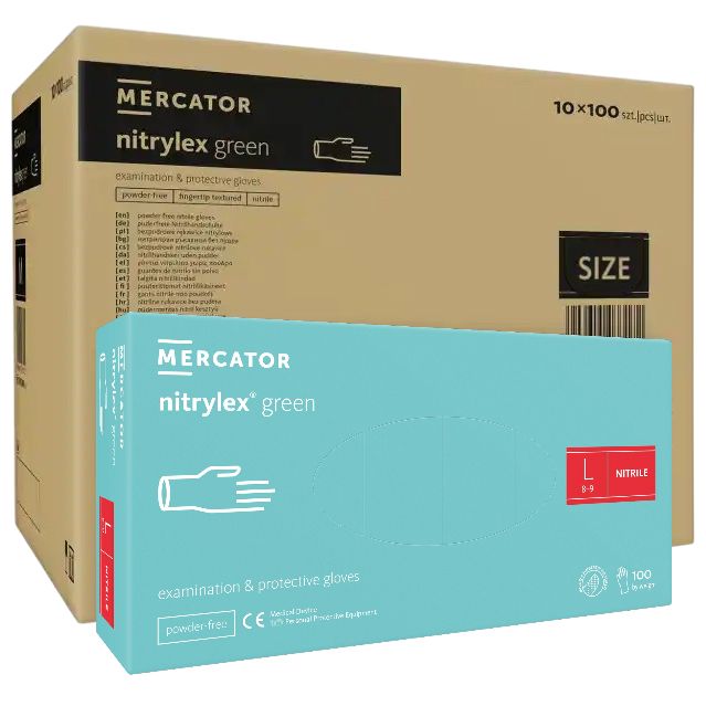 Nitrylex Green - це класичні зелені нітрилові рукавички без пудри від бренду Mercator Medical, створені для професіоналів, для яких важливий захист, комфорт і універсальність застосування. Завдяки високому бар'єрному рівню вони захищають від бактерій, грибків і вірусів, а також ідеально підходять для роботи в медицині, індустрії краси та харчовому виробництві.