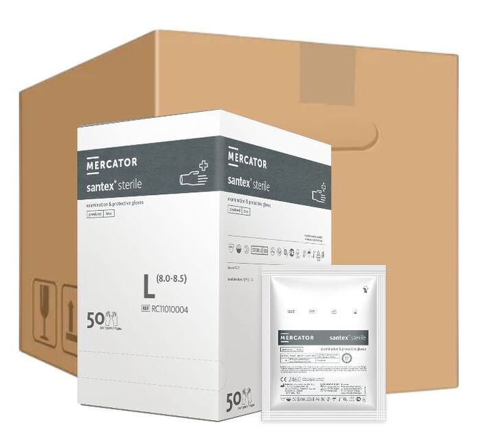 Santex Sterile L - це стерильні латексні рукавички медичного призначення, призначені для професійного застосування в умовах, де потрібна максимальна чистота і захист. Завдяки стерилізації оксидом етилену (ETO) і зручній анатомічній формі, вони забезпечують безпеку, гігієну і комфорт при кожному використанні.