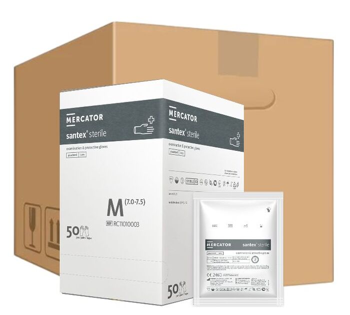 Santex Sterile M - це стерильні латексні рукавички медичного призначення, призначені для професійного застосування в умовах, де потрібна максимальна чистота і захист. Завдяки стерилізації оксидом етилену (ETO) і зручній анатомічній формі, вони забезпечують безпеку, гігієну і комфорт при кожному використанні.